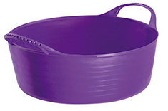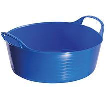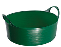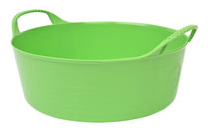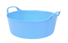 A flexible and weather resistant tub that is built to last. The golf ball handles make them easy to grip and carry, while being reinforced can take the pressure of even very heavy loads. The sides of the tub are ribbed to ensure its strength and durability, and the edges are chamfered to make scooping, sweeping up or pouring even easier. They are produced using food-grade LDPE meaning that food can be stored and prepared in them, ensuring that they are horse and pet friendly too. All tubs are BPA free excluding the black. green and yellow. Height 10.5cm and diameter 28cm. Capacity 5 litres.