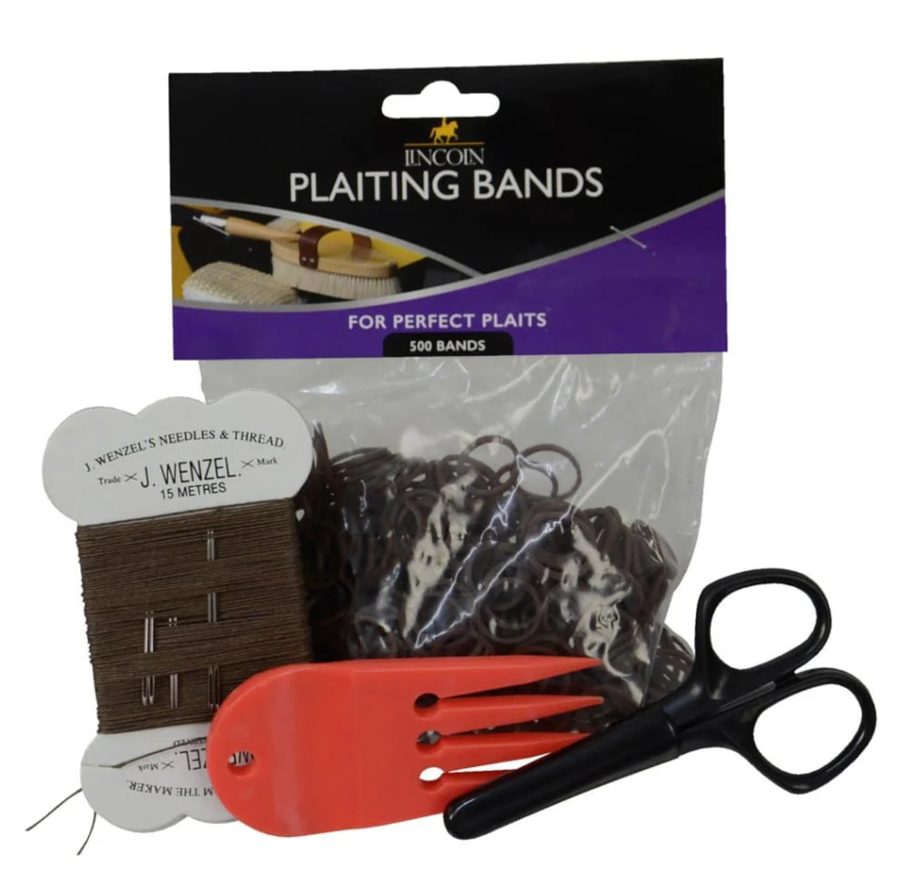 This Lincoln Plaiting Kit contains 3x Wenzel Plaiting thread, 1x plait aid, x1 packet of plaiting bands, x1 plaiting scissors and 5x needles, the essentials for creating the perfect plaits. This plaiting kit will help to ensure your plaits are best in show! Competition use.