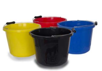 3 gallon bucket with thick, ribbed walls. Strong metal handle with plastic grip for easy carrying. Great for plastering, mixing, plumbing, carrying water and many more uses on building sites and around the home and garden.