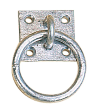 A hefty galvanised product with four fixing holes in a 5cm square plate, 5mm thick. Weight 0.19kg.