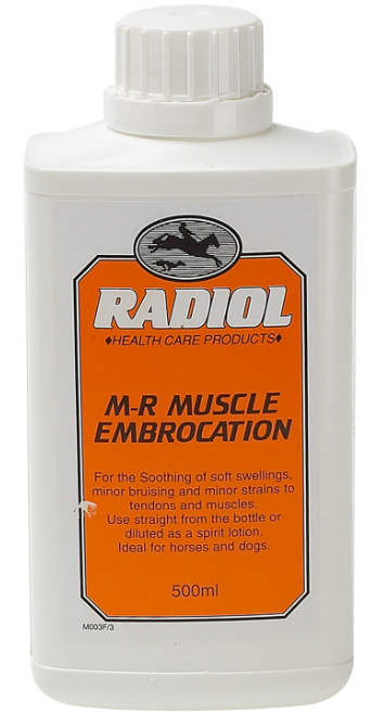 Suitable for use on minor bruising, strains and soft swellings, Radiol M-R Muscle Embrocation is a quality, soothing, relaxing embrocation that can either be used direct from the bottle or diluted with water to form a spirit lotion.
