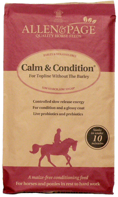 Calm & Condition® is a high calorie/energy feed for horses and ponies that need to put on or maintain weight and condition. It is also ideal for harder working horses and some breeds of youngstock. Being whole cereal grain and molasses free it is higher in fibre and lower in starch and sugar than traditional conditioning feeds. The energy that Calm & Condition supplies comes from its high fibre and oil content which is an excellent source of slow release, stamina giving energy.