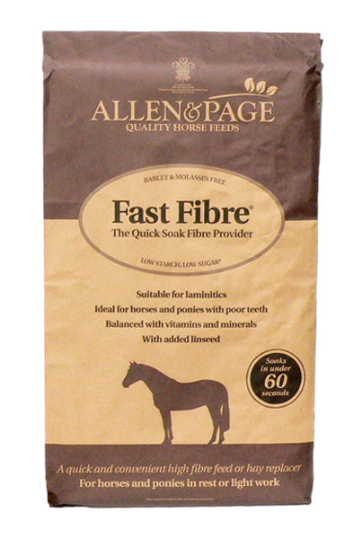 Fast Fibre® is a low calorie/energy feed, ideal for the good doer or those who tend to be excitable even on low energy feeds. It is high in fibre and low in starch and sugar, making it suitable for horses and ponies prone to laminitis. Due to its high fibre content it is also particularly useful for horses and ponies with dental problems and can be fed as a partial hay replacer. Fast Fibre’s® unique recipe enables it to be soaked in under a minute so you can be sure that your horse’s feed is always fresh.
