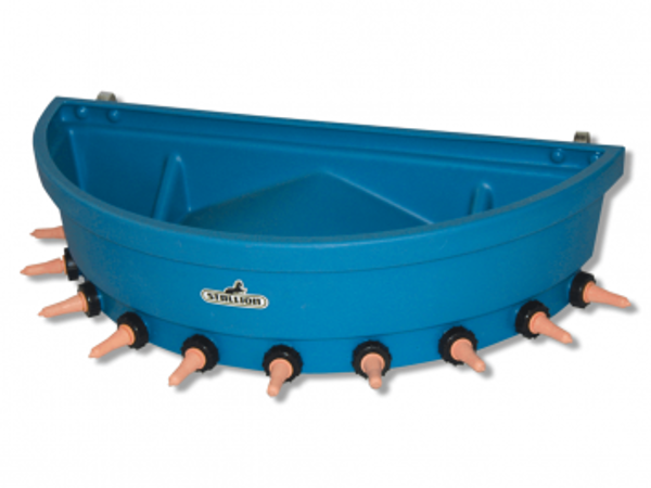 The Stallion Calfateria 10 Teat Feeder is a neat solution to feeding evenly matched calves. Holds up to 80L.