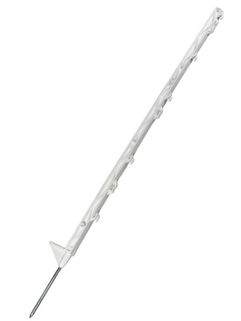 Fenceman Poly Posts that are 90cm tall made from a robust plastic and feature a foot support which makes them easier to tread into the ground and a good length spike to ensure they stand secure.