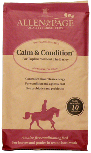 Calm & Condition® is a high calorie/energy feed for horses and ponies that need to put on or maintain weight and condition. It is also ideal for harder working horses and some breeds of youngstock. Being whole cereal grain and molasses free it is higher in fibre and lower in starch and sugar than traditional conditioning feeds. The energy that Calm & Condition supplies comes from its high fibre and oil content which is an excellent source of slow release, stamina giving energy.