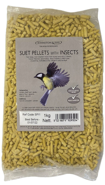 Give your garden birds a tasty boost with Johnston & Jeff Suet Pellets, 1kg – available in Insects or Berries to suit a variety of feathered tastes. Packed with essential fats and calories, these suet pellets are a high-energy, easily digestible treat that’s ideal for both young fledglings and adult birds alike.