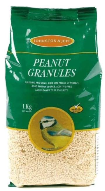 Johnston & Jeff Peanut Granules are ideal for fledglings and smaller birds which require a higher level of energy oils but cannot cope with full sized nuts.