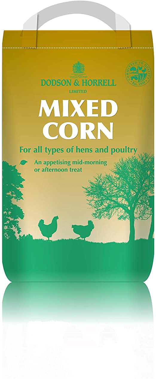 Dodson & Horrell Mixed Corn is ideal to be fed scattered as a treat to encourage the hen's natural foraging instinct. A blend of wheat and kibbled maize, Mixed Corn should ideally be given to your poultry after they have been fed their main ration.