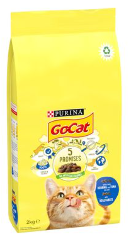 Cats love the taste of Go-Cat Adult Tuna, Herring & Vegetables complete dry food for adult cats. Protein-rich and scrumptious, with delicious tuna, herring and vegetables - all to maintain good health.