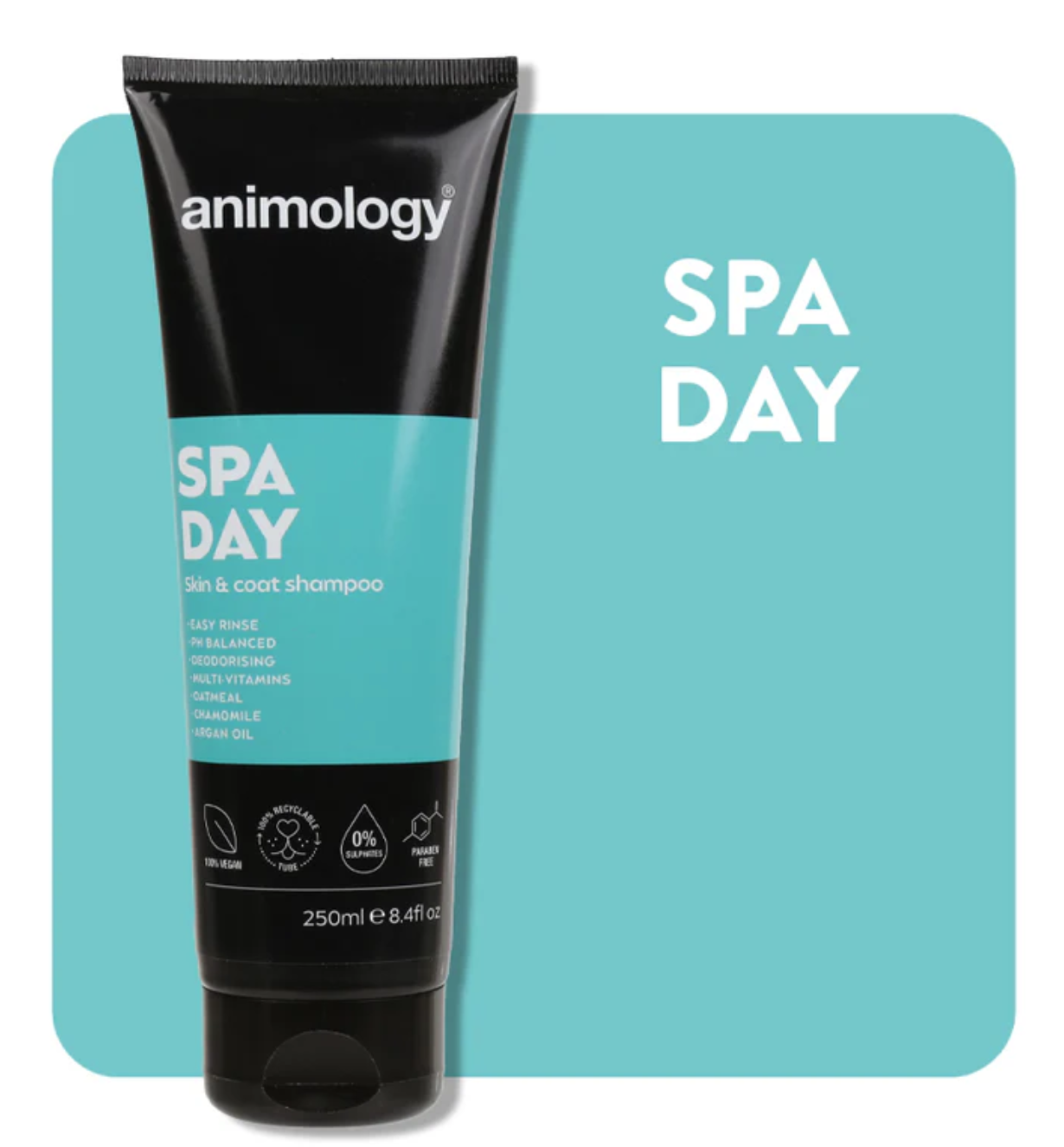 Spa Day by Animology, is a luxurious shampoo that cares for your dog's skin and coat. Enriched with oatmeal, chamomile and argon oil with built-in vitamins and conditioners, it helps improve the natural shine and softness of the fur and soothes skin. Spa Day can be used on all coat and skin types and is suitable for all dogs from 6 weeks old.