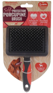 Porcupine Brush with ergonomic hand grip. Suitable for double/ thick/ untidy coats. Hard bristles reduce tangles and matts from the undercoat. Soft bristles removes loose hairs.