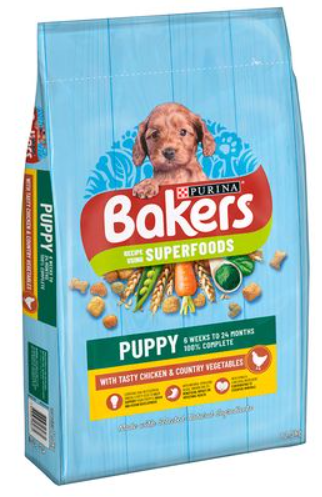 Bakers Complete Puppy is a compete food suitable for puppies aged between 6 weeks and 24 months. It has been specially developed to provide a complete balance and delicious taste to provide your puppy with all of the nutrition he needs to grow healthily. Puppies burns 2-3 times as many calories as adult dogs and therefore needs the best nutrition available. The food contains high levels of protein to support growth, high levels of minerals (eg. calcium and iron) and Vitamin D which will help to support strong bones and teeth. The kibbles are small to help your puppy to chew and digest the food more easily.