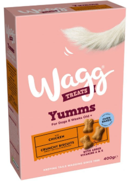 Wagg Yumms with Chicken are ideal when your dog deserves a tasty treat. The crunchy biscuit texture will help keep your dog’s teeth and gums clean.
