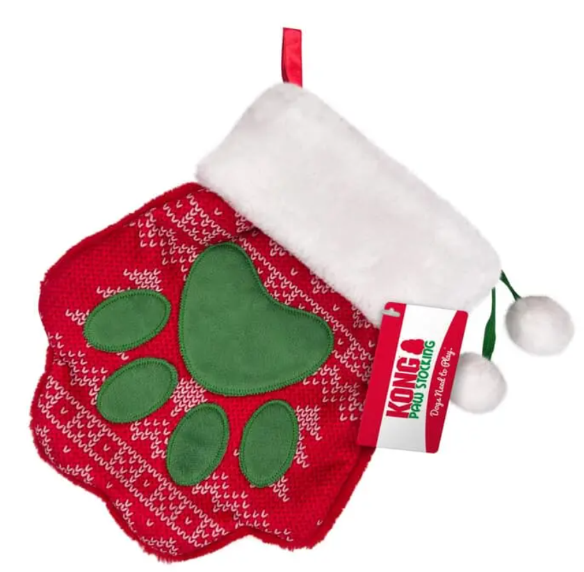 Naughty or nice, this is the perfect stocking for all cats and dogs! KONG® Holiday Stocking Paw’s fun holiday sweater print and paw shape makes the perfect decoration and is roomy enough to fill with lots of KONG toys and treats for your furry family members this holiday season.